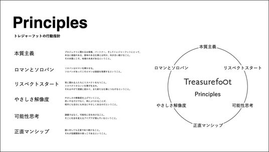 トレジャーフットの原点に立ち返り、社名の由来となった想いをストレートにBeliefに掲げ、大切にしてきたValueをさらに強くしなやかなPrincipleとしてアップデートすることができました。