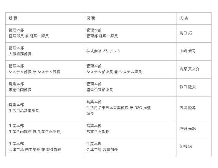 (3)生活用品東日本営業部、生活用品西日本営業部を統合し、生活用品営業部に改称