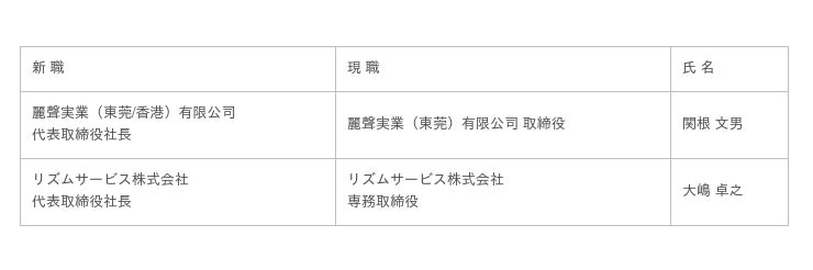 2012 年6 月 東北リズム株式会社(現リズム株式会社)代表取締役社長