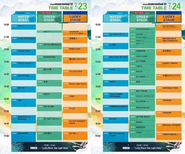 株式会社茨城放送(本社所在地:茨城県水戸市)は、 国営ひたち海浜公園で7月23日(土)、 24日(日)に開催するLuckyFM Green Festival(通称:LuckyFes)のタイムテーブルを発表しました。 LuckyFesは「クロスオーバー」をコンセプトに掲げており、POPSやROCK、HIPHOP、JAZZやEDM、世代を超えたメガヒッツなどLuckyFMの番組に連動させて多種多様な音楽をお届けする予定です。