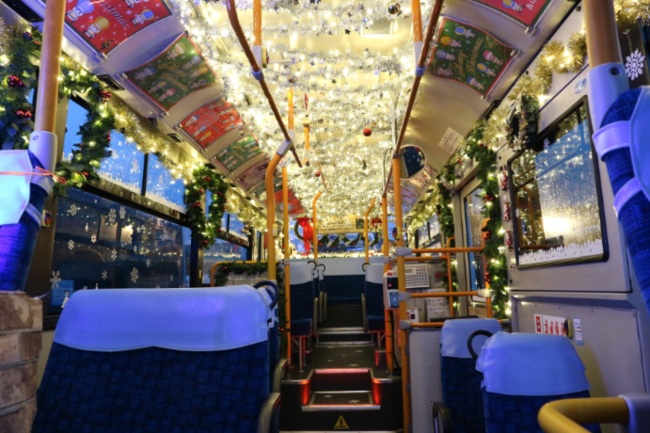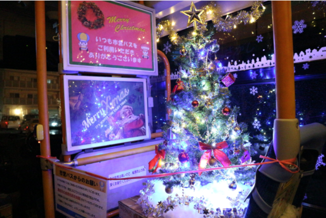 バス車内は、クリスマスツリーの設置や、LEDランプなどで装飾しており、利用されるお客さまにはクリスマス気分を存分に味わっていただけます。また、サプライズで、サンタに扮した運転士がバスに乗務しますので、楽しみにしてください。