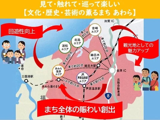 2024年3月16日には、「100年に一度の好機」である北陸新幹線芦原温泉駅の開業を控えています。このチャンスを最大限活かし、地域活性化につなげるためには、資源の磨き上げに取り組み、観光客の市内滞在の満足度向上を図る必要があります。