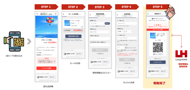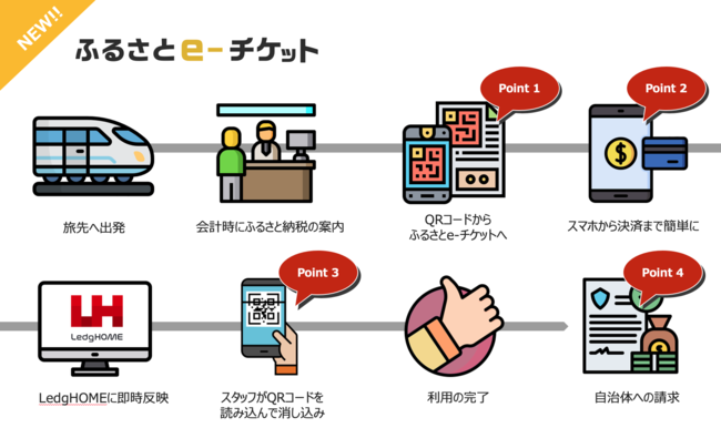 旅行者などが現地で寄附申し込み、会計時にその場で電子チケットの利用が可能に