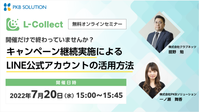 さらに、サービスの詳細な説明や具体例を用いた「L-Collect」の導入メリットの紹介など、気になる点や不安を解消できる無料ウェビナーを7月20日(水)に開催します。本日より参加受付を開始しましたので、ぜひお気軽にご参加下さい。