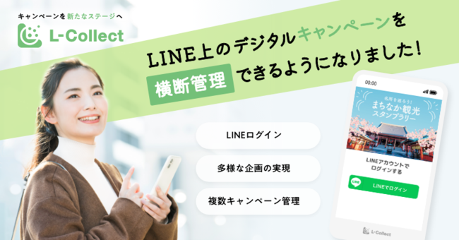 「L-Collect」は、LINEを通して非接触スマホスタンプラリーやデジタルクーポン、モバイル抽選などの多様なキ