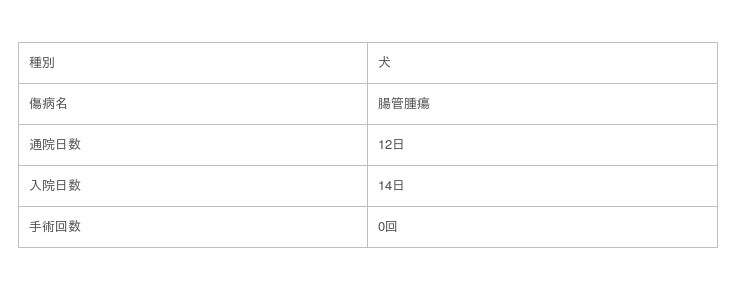 ※下記の診療内容は、犬の腸管腫瘍の一般的な診療内容についての記述になり、PS保険にご請求いただいた事案の診療内容とは異なります。