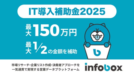 株式会社インフォボックス(本社:東京都千代田区、代表取締役:平沼海統)が提供する営業データプラットフォーム「infobox」は、「IT導入補助金2025」(以下「IT導入補助金」)制度におけるIT導入支援事業者として採択されたことをお知らせいたします。