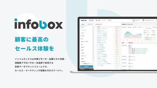 私たちは「ALL-WINNERな世界へ。」をビジョンに掲げ、買い手・売り手双方にとってより良い購買環境を実現するスタートアップです。市場リサーチ・企業リスト作成・決裁者アプローチを一気通貫で実現する営業データプラットフォーム「infobox」を開発・運営・販売しています。