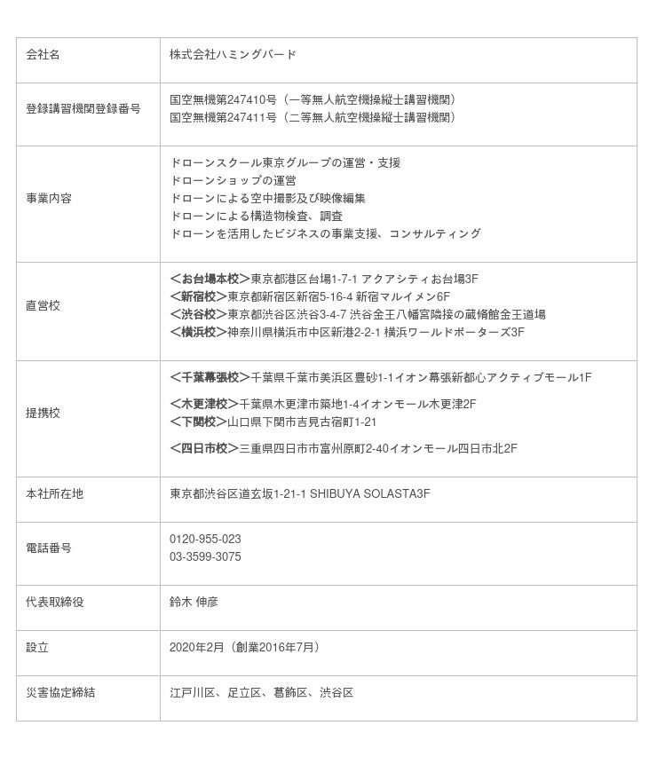 ハミングバードは、最先端テクノロジーとサービスを事業者や個人に提供し、ドローン事業の無限の可能性を形にし、優秀な人材を育成して産業発展に貢献する目的で設立。