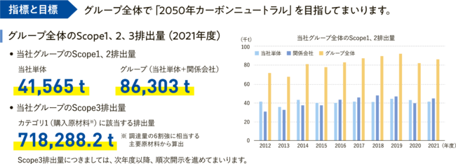また、同年6月に開示したTCFD(気候関連財務情報開示タスクフォース)について、気温上昇がリケンテクノスグループの事業活動にどのようなリスクや機会をもたらすのか、また「2050年カーボンニュートラル」を目指した当社グループの取り組みなどをご紹介しています。