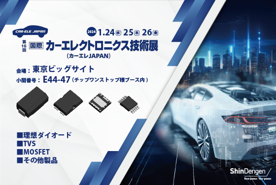新電元工業は2024年1月24日(水)から26日(金)に東京ビッグサイトで開催される「第16回 国際カーエレクトロニクス技術展」に出展します。
