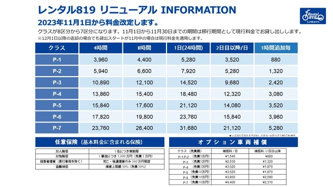 2023年11月1日~車両クラスとクラスごとの料金を変更いたします。
