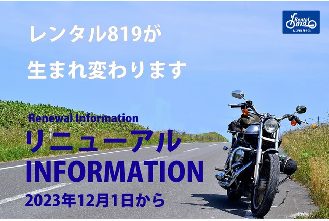 全国で原付き~大型バイクや電動バイクまでのレンタルバイクサービスを展開する「レンタル819」のWebサイトが、2023年12月1日より全面リニューアルいたします。リニューアルすることで、お客様にはより便利で簡単に、レンタルバイクをご利用いただける、新しいがたくさんのレンタル819となります!
