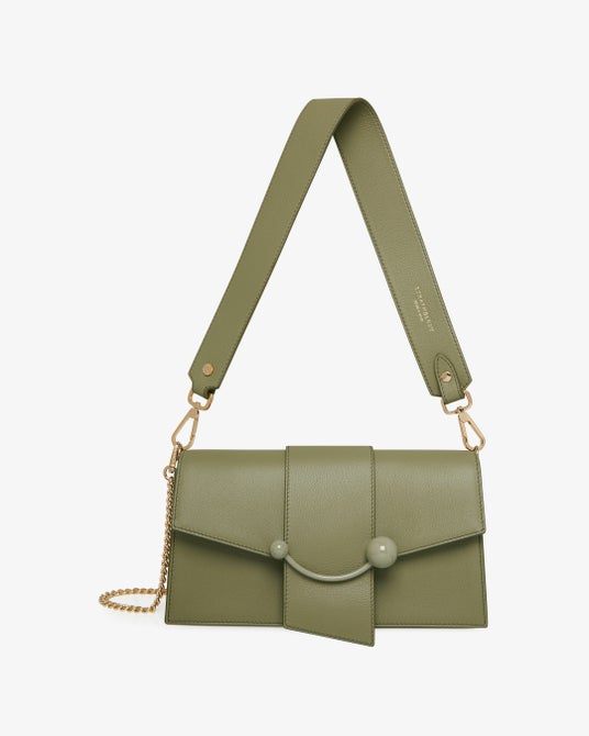 お札を折らずに収められる大きめのメルヴィルストリート・ウォレットは、シーズンカラーのピスタチオが上品。