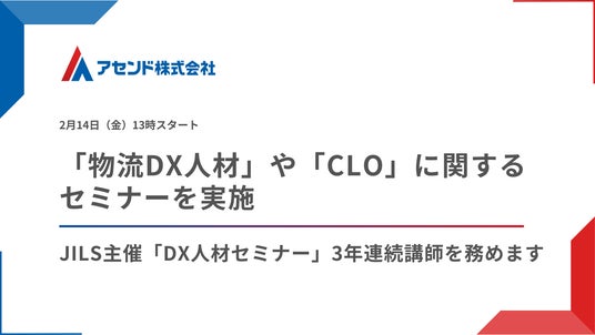 物流DXを推進するアセンド株式会社(本社:東京都新宿区、代表取締役:日下瑞貴、以下「当社」)は、2月14日(金)13時より、公営社団法人 日本ロジスティックス システム協会(以下、「JILS」)が主催する『物流業界におけるDX人材の育成セミナー』にて、代表日下がセミナー講師として登壇いたします。