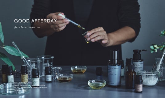 「天然精油や植物性原料は、心身にさまざまな作用をもたらす点も、人工的なフレグランスと大きく異なるところです。植物も人間も、同じ有機体であることから、香りを楽しむことで植物の生命力に共鳴し、自身の生きる力に変えることができます」と川野さんは話します。GOODAFTERDAYは、単に香りを楽しむブランドに留まらず、心身を整える力(テラピー効果)もお届けするために、川野さんと植物性処方にこだわりました。