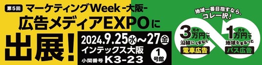全国でエリアマーケティング事業を展開する株式会社キョウエイアドインターナショナル(本社:東京都千代田区 代表取締役:廣瀬勝巳 以下「キョウエイアド」)は、9月25日(水)~27日(金)、インテックス大阪 1号館で開催される「第5回 広告メディアEXPO【関西】」に初出展、交通広告の特長や魅力を発信します。