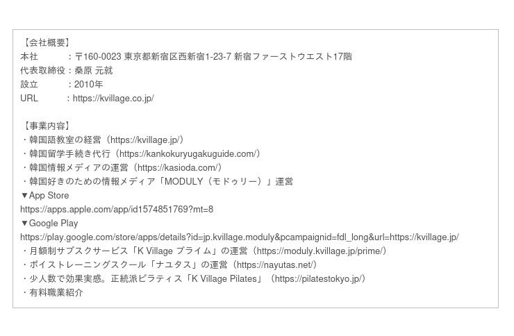 (2)当社の中核事業である「K Village韓国語」や韓国情報アプリ「K Village MODULY」、などでカンナムドールが保有するサービスやコンテンツを用いることで事業領域の拡大が期待できます。