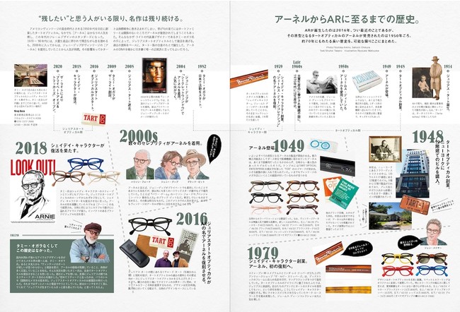 さらに第2特集内で、実は奥深い“アーネル”から“AR”に至るまでの奥深い歴史を紹介する年表ページもご用意しております。メガネを歴史という視点から新しく学べるこの企画、ぜひお楽しみください!