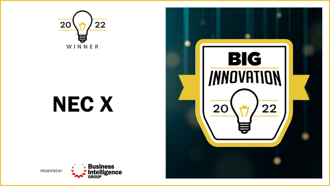 NECの子会社で、シリコンバレーで新事業創出の取り組みを進めているNEC X, Inc. (注1、以下 NEC X)が、「2022 BIG Innovation Award」(Organization, Technology部門)を受賞しました。