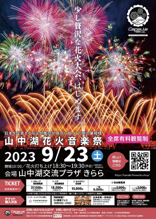 山中湖アート花火実行委員会は、2023年9月23日(土)に新しいスタイルの花火イベント「Capsule - Mt.Fuji 山中湖花火音楽祭 -」を初開催。そのチケットを、全国の花火大会を手掛ける花火プロデュースカンパニーであるFIREWORKS株式会社のオフィシャルプレイガイド「FIREWORKS STORE」においても販売を開始しました。