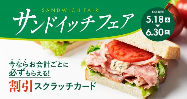 2023年5月18日(木)から6月30日(金)の「サンドイッチフェア」開催期間中、お会計ごとに、最大