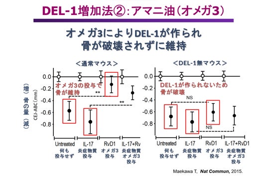 DEL-1により骨の破壊を防ぎ、骨を再生させることで、健康な歯の状態に戻すことができる可能性が示唆されています。