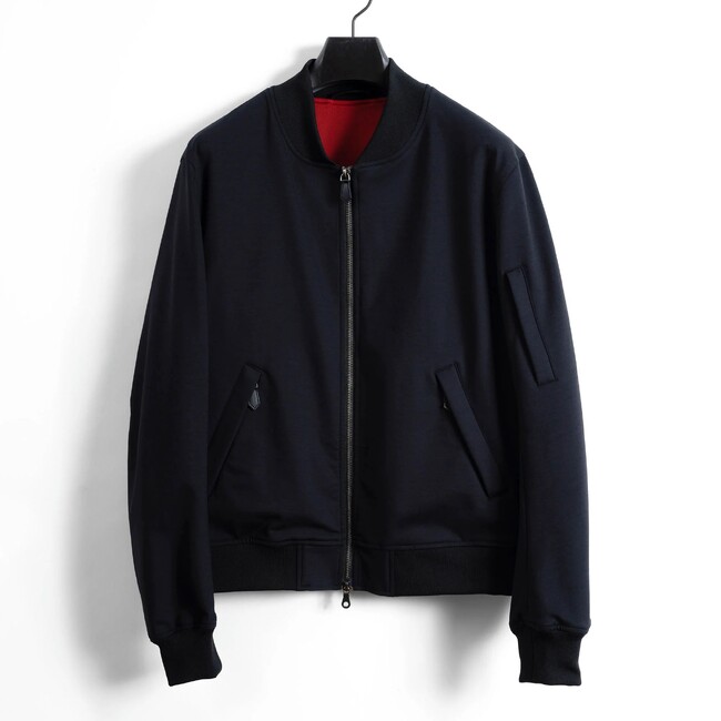 高級スーツ地にも採用されるほどの極細ウールとスポーティーなジャージーによる、ラグジュアリーで快適な着心地を実現した、MOVBにしかない素材。