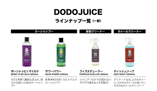 イギリスでプロ向けの高品質カーケア用品として展開するDodoJuice。汚れた車を綺麗にする際に用途に応じて使い分けられる製品群が揃うドードージュースを日本では「どうする?Dodoする!」というコンセプトにて製品展開を開始し、2023年4月にさらに取り扱い製品のラインナップを増やすとともにネット販売ページを公開いたしました。