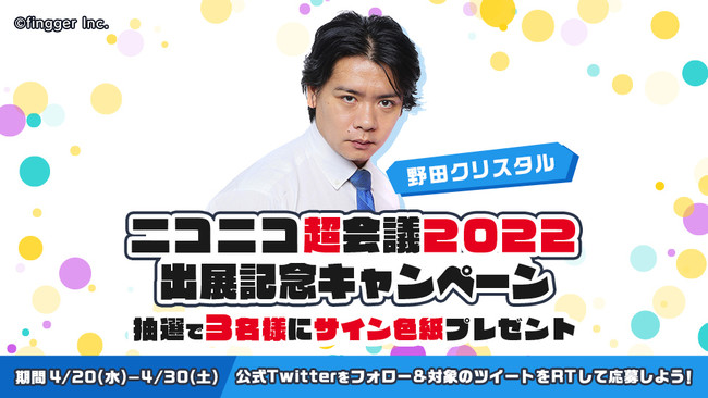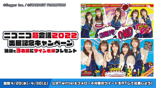 「ニコニコ超会議2022」への出展を記念して、出展ブース「超このゆびとまれfinggerライブ in ニコニコ超会議」に出演する豪華ゲストのサイン色紙が当たるTwitterキャンペーンを開催いたします。