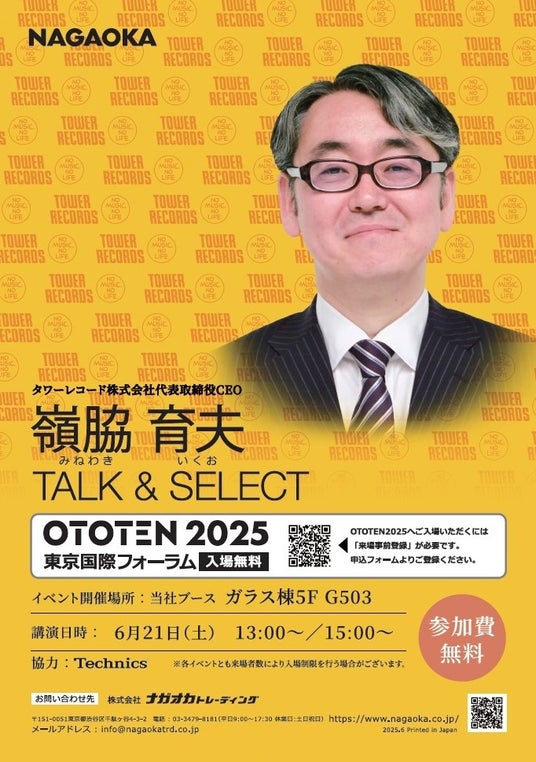ナガオカは、2025年6月21日(土)・22日(日)に東京国際フォーラム(東京都千代田区丸の内)で開催される国内最大級のオーディオ・ホームシアターイベント「OTOTEN2025」(主催:一般社団法人 日本オーディオ協会)に出展いたします。