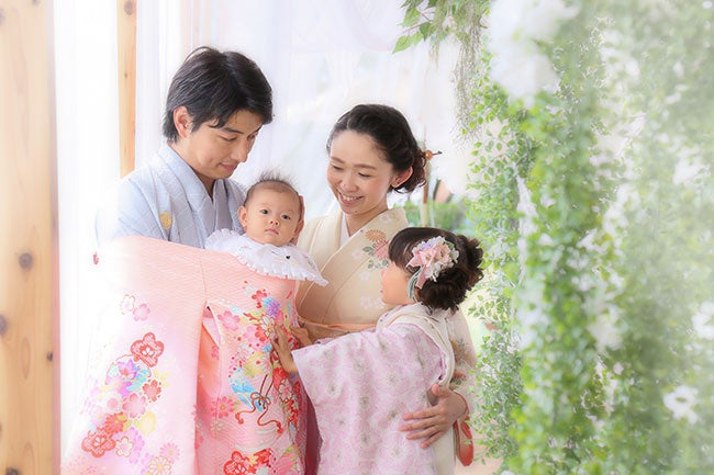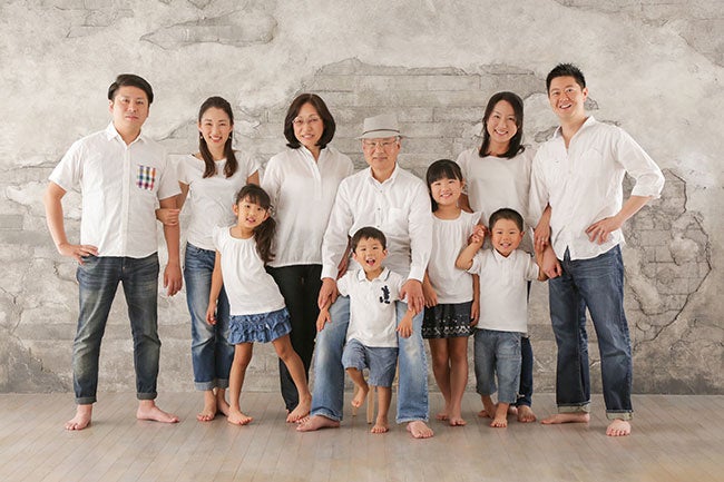 写真スタジオでは、大家族での撮影も可能な広い空間や豊富な衣裳をご用意しています。たとえば、親戚みんなで集まってワイワイと撮影する、京都の呉服屋さんとコラボデザインしたオリジナル着物を着て、家族全員がお揃い和装で撮影するなど、特別な記念日をより特別に演出します。そしてなにより、個室スタジオは人目が気にならないので、家族がリラックスして撮影することができます。さらに、感染症対策としても安心できるので、マタニティやベビーの撮影にも家族が集まりやすい環境といえます。
