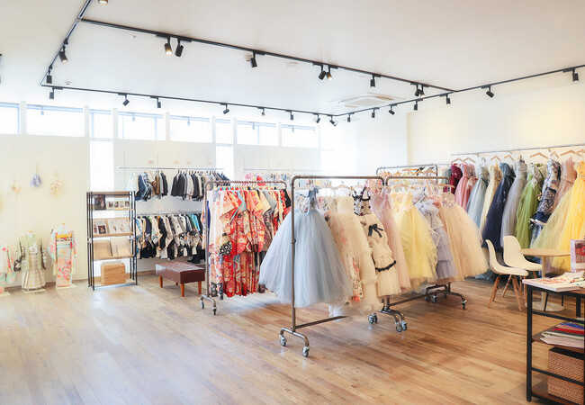 広々とした店内は、ゆったり落ち着いた気持ちでお過ごしいただけます。また、たくさんの衣装を自由に見ていただけるようにディスプレイしており、ご家族で楽しみながら選んでいただけます。