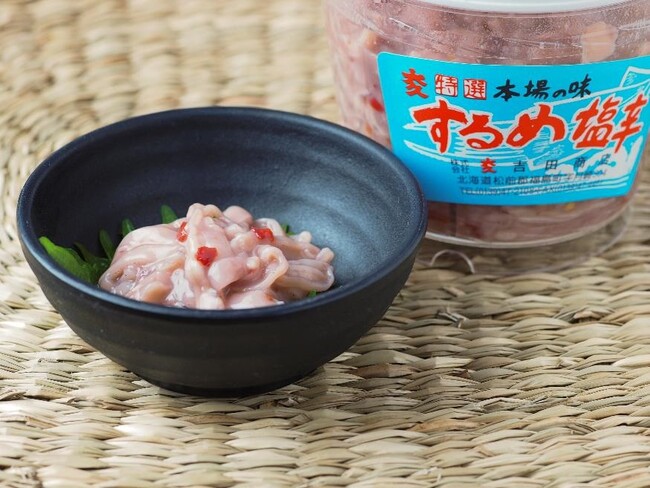 青の洞窟を巡る「岩部クルーズ」が話題の福島町。道の駅には、名産のスルメのほか、福島の海をイメージしたサイダーも。