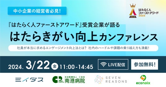 2024年3月22日(金)11時~ Zoomにて無料開催! ~中小企業や、地方の企業こそ「できる」そして「向き合わないといけない」はたらきがい向上とは~