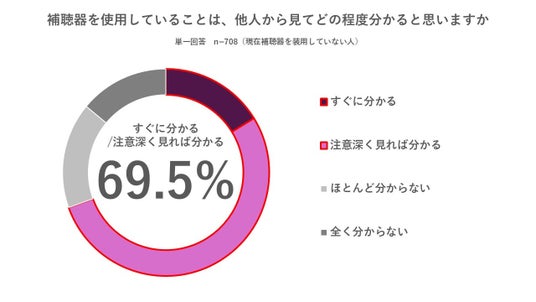 ■現在補聴器を使用していない人のうち「補聴器を使用していることは他人から分かる」と69.5%が回答。
