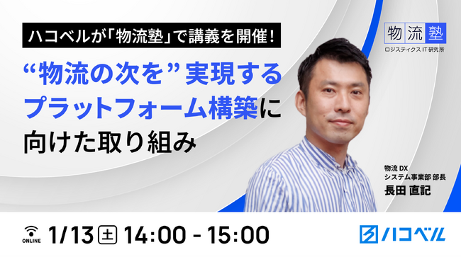 物流プラットフォーム「ハコベル」を展開するハコベル株式会社(本社:東京都中央区、代表取締役社長CEO:狭間 健志、以下:ハコベル)は、ロジスティクスIT研究所(神奈川県秦野市、主幹:西田 光男)が開催する第260回「物流塾」において、弊社物流DXシステム事業部長の長田 直記が講師として講義を実施することをお知らせいたします。実会場(先着、有料)とオンライン(受付中、無料)で聴講ができ、2024年のスタートを物流をテーマに参加者の皆さまとご一緒に考え、議論を深める機会となっております。