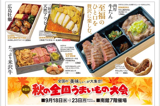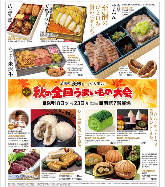 今年で8回目をうまえる「秋の全国うまいもの大会」は9月18日(水)~23日(月)の期間、佐賀玉屋南館7階催場にて開催いたします。