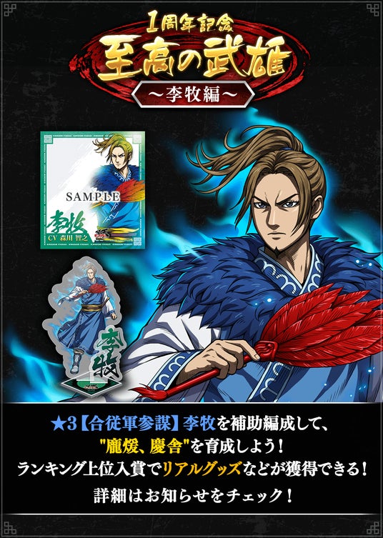 ◎Pickup:新軍師★3【合従軍参謀】李牧(CV:森川智之)が登場!