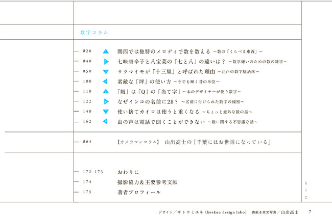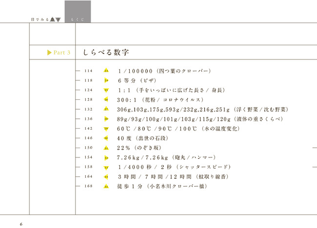 日常生活において、出合う無数の「数字」。その数字を改めて調べて、実際に写真に撮ってみると意外な姿が現われる。それを雑学とともに紹介し、楽しむ。数字は遍く存在しており、数字を切り口にすると様々な分野の興味深い雑学をビジュアルで見せることができる。本書を読んだ後、日常風景がこれまでとは別様に見えるようになる。本書はそんな写真集である。