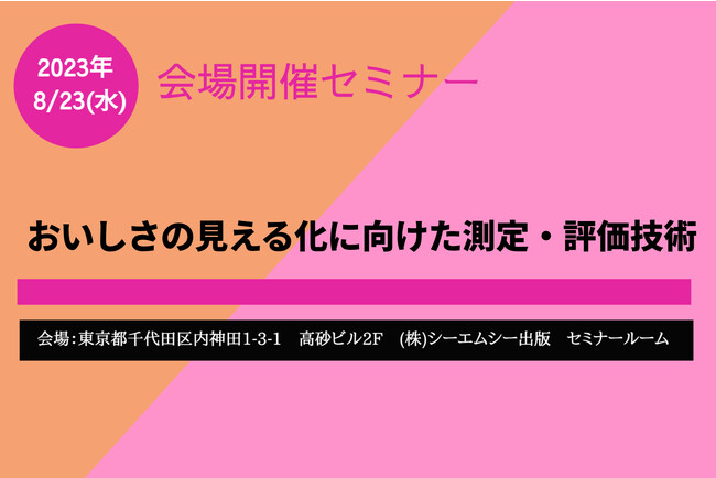 食品・バイオテクノロジーなどの技術・市場動向レポート発行やセミナー開催を行う、株式会社シーエムシー出版(本社:東京都千代田区、代表:辻賢司)は、8月23日(水)13:20~16:40に「おいしさの見える化に向けた測定・評価技術」セミナーを開催します。