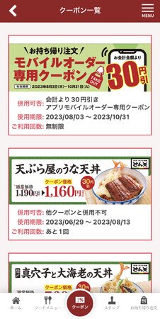 「天丼・天ぷら本舗 さん天」公式アプリの機能紹介