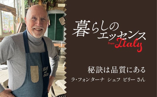 マニフレックス(総輸入販売元 株式会社フラグスポート、東京都港区 代表取締役 山根崇裕)は、インタビュー企画『暮らしのエッセンス』のイタリア編がスタート。初回となる今回は、マニフレックス本社社員も足繁く通うトスカーナ・プラートの人気レストラン「Trattoria La Fontana(トラットリア・ラ・フォンターナ)」のオーナーシェフ、ビリーさんが登場。
