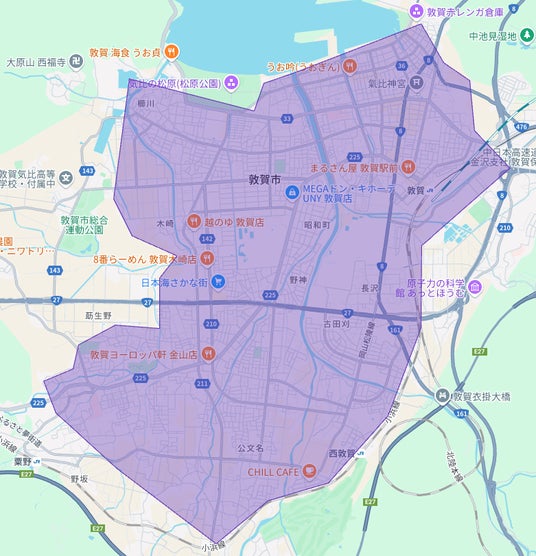 - 福井県:敦賀市、越前市・鯖江市