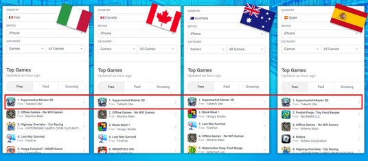 世界各国・地域にて、無料ゲームランキング続々とランクインしました。