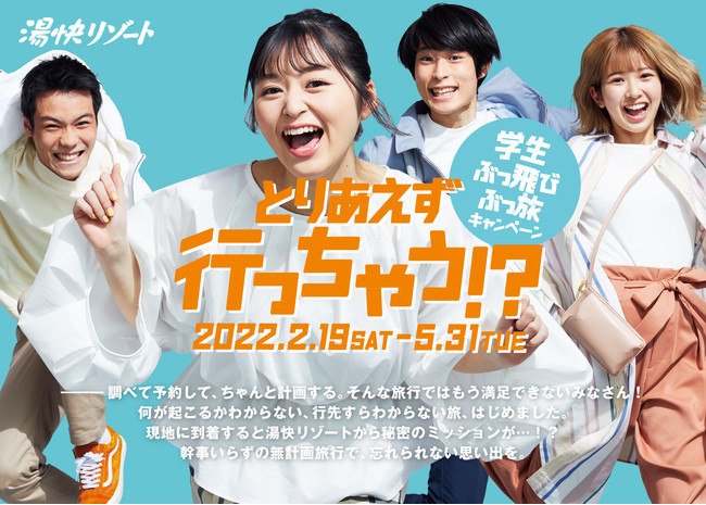 湯快リゾートは、2022年2月19日(土)から5月31日(火)までの約3ヶ月間限定で実施する、「学生ぶっ飛び ぶっ旅キャンペーン」のご予約を、2022年1月21日(金)より開始いたします。