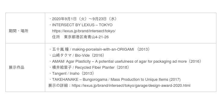 LEXUS DESIGN AWARD 2020 入賞作品概要 (2/3)