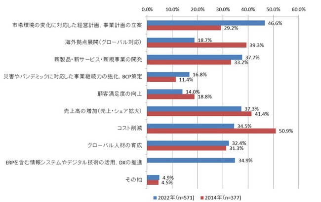 ※「ERPを含む情報システムやデジタル技術の活用、DXの推進」の設問項目は2022年の調査から新規追加
