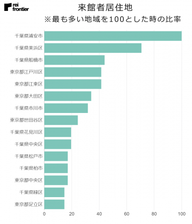 東京ディズニーリゾートで県外からの来館を控えるように促している効果があったのか上位20位のうち7割は千葉県内、遠方からの来館は極力控えられていたようです。