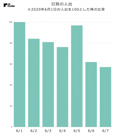 2020年6月1日の人出を100とした時の比率